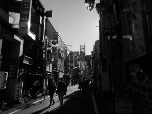 歓楽街を抜けると、線路と電気屋の間の大きな道を歩く。しばらくすると、人でごった返すスクランブル交差点につく。